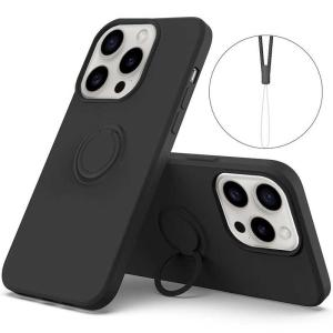 - ROYALMONSTER iPhone 15 Promax シリコン製ケース リング付(ブラック) BK RM-15PMSili-BK