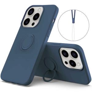 - ROYALMONSTER iPhone 15 Promax シリコン製ケース リング付(ネイビーブルー) NV RM-15PMSili-NV