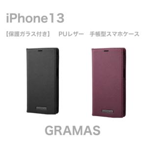 - GRAMAS iPhone 13 PUレザー 手帳型スマホケース 保護ガラスフィルム付き グラマス ブラック ボルドー