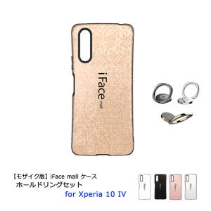 - モザイク版 iFace mall ケース ホールドリング セット Xperia 10 IV SO-52C SOG07 10IV カバー 指紋防止 ラメ エクスペリア ストラップホール