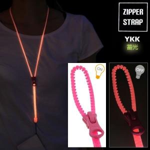 - YKK ファスナー使用 蓄光 で 光る ジッパーストラップ(ロング/ピンク) スマホ 携帯ストラップ