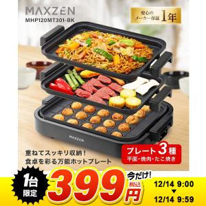 - ホットプレート たこ焼き器 コンパクト シンプル プレート2種 一人用 MAXZEN 最大250℃ 無段階調整 ホワイト MHP120LT01-WH 新生活
