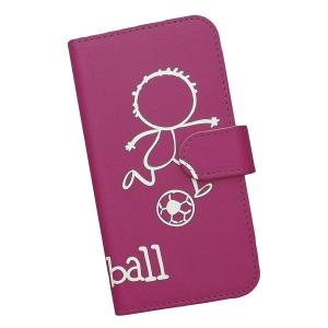 FREETEL スマホケース 手帳型 フットボール サッカー 蹴球 スポーツ モノトーン 棒人間 ピンク