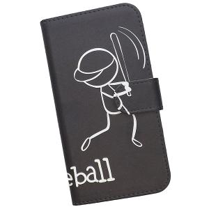 FREETEL スマホケース 手帳型 プリントケース 野球 モノトーン ベースボール 棒人間 ブラック