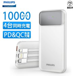 - Philips (フィリップス) モバイルパッテリー 大容量 10000mAh スマホ充電器 PSE認証済 ケーブル内蔵 PD&QC急速充電 四台同時充電 LED電量表示 DLP1912CW
