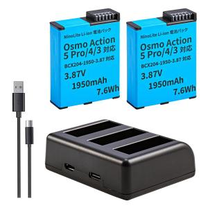 - 3点セット USB型 トリプルバッテリーチャージャー と 互換バッテリー2個 DJI Osmo Action 6 / 5 Pro / 4 / 3 / Osmo 360カメラ用