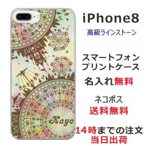 - iPhone8 ケース アイフォン8 カバー ラインストーン かわいい らふら 遊園地