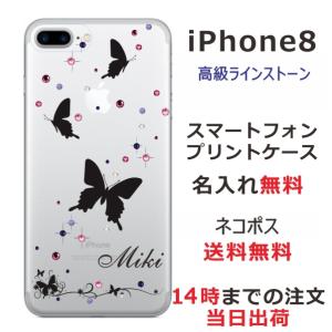 - iPhone8 ケース アイフォン8 カバー ラインストーン かわいい らふら スリーバタフライ