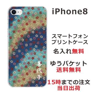 - iPhone8 ケース アイフォン8 カバー らふら 和柄 和小花ブルーグラデ