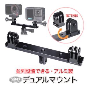 - デュアルマウント アダプター 二股 並列 比較動画 90度回転 方向変更 ホットシュー付き アクションカメラ用 DJI/Insta360/GoPro用
