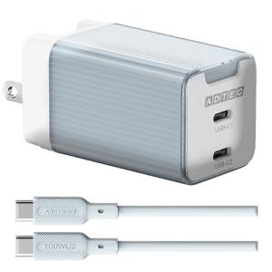 - PD対応 AC充電器 GaN USB Type−C 2ポート Type−Cケーブル付属 65W ブルー APD−V065C2−BL−SC10U2