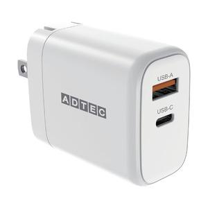 - ADTEC アドテック Power Delivery対応 GaN AC充電器/65W/USB Type-C 2ポート/レッド APD-V065C2-RD