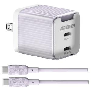 - アドテック APD-V045C2-PU-SC10U2 PD対応 AC充電器/ GaN/ 45W/ USB Type-C 2ポート/ パープル&Type-C to Cケーブルセット