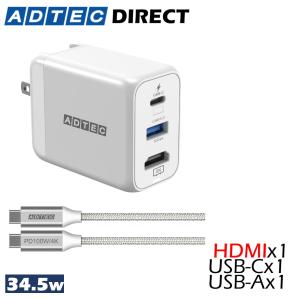- 充電器 急速充電 ACアダプター USB Type-A 1ポート Type-C 2ポート 105W APD-A105AC2-WH ホワイト ADTEC アドテック