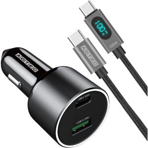 - DC充電器 PD対応 100W 2ポート USB-C+USB-A ワットモニタ ADTEC ACPD-V100AC-wC12U2LE