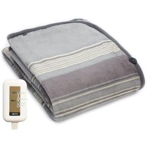 - 広電 CWN141H-HB グレイ ボーダー柄 電気ひざ掛け毛布 (140×82cm)