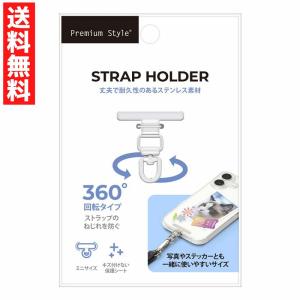 - スマートフォン ストラップホルダー 360° 回転タイプ ホワイト 携帯 ストラップ 落下防止 ステンレス製 耐久性 PG-SSTH07WH