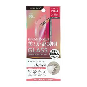- PGA iPhone16 iPhone15 用 液晶全面保護ガラス ラメフレーム シルバー クリア PG-24AGLL02SV