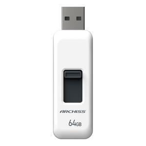 - アーキス(Archiss) USBメモリ 64GB USB2.0 スライド式 ストラップホール付き キャップレスデザイン ホワイト AS-064GU2-PSW