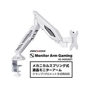 - ARCHISS モニターアーム [1画面 /17〜32インチ] メカニカルスプリング式 Monitor Arm Gaming ホワイト AS-MAGA01