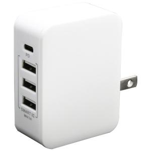 - インプリンク PD対応Type-C/3USBポートAC充電器 最大出力20W IAC1C3UPD20W ホワイト