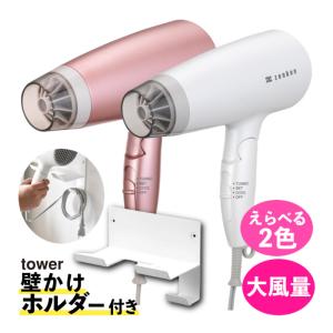 - ゼンケン ヘアケアドライヤー 電磁波低減 ZD-750W ホワイト ZD-750P ピンク tower 4508 ウォールドライヤーホルダー付 2点セット