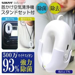- 首掛け空気洗浄機 スタンドセット付 携帯用 空気清浄機 除菌 消臭 マイナスイオン 花粉 除去 タバコ 煙 小型 充電式 ポータブル