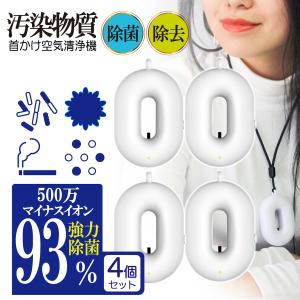 - 首掛け空気清浄機 4個セット 携帯用 空気清浄機 除菌 消臭 マイナスイオン 花粉 タバコ 煙 小型 コンパクト 充電式 ポータブル
