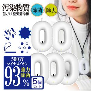 - 首掛け空気清浄機 5個セット 携帯用 空気清浄機 除菌 消臭 マイナスイオン 花粉 タバコ 煙 小型 コンパクト 充電式 ポータブル