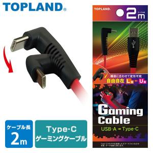 - トップランド USB Type-C ゲーミング フラットケーブル 1m(L型⇔U型) TOPLAND CHCG10-RD 返品種別A
