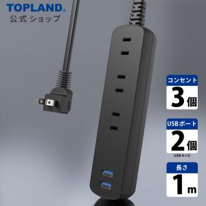 - 延長コード ACコンセント 3個口 USBポート ( Aタイプ×2個) USB充電 1m 電源タップ ブラック TPA310-BK トップランド 公式ショップ