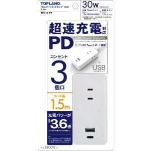 - トップランド 電源タップ USB PD 対応 超速充電 (AC3個口 / USB-A 1口 / USB-C 1口) コード長1.5m オートパ