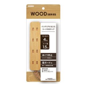 - トップランド コードタップ 4個口 ナチュラルウッド 配線用品 電源タップ 延長コード 木目調 雷ガード M4249−NW [ M4249NW ]