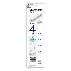- TOPLAND トップランド USB付きコンセント4個口タップ 2.5m TPA425-WT(2590210)