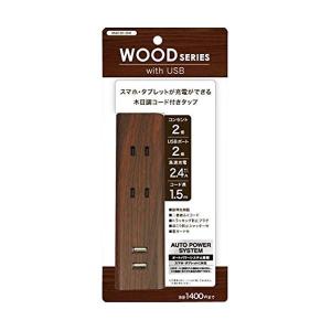 - トップランド USB付きタップ 1.5m ダークウッド M4020-DW USB充電 電源タップ 雷ガード付 オートパワーシステム搭載