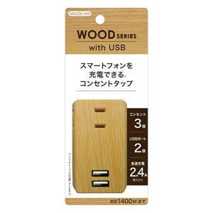 - トップランド USBスマートタップ(3個口+USB 2ポート)ナチュラルウッド TOPLAND M4226-NW 返品種別A