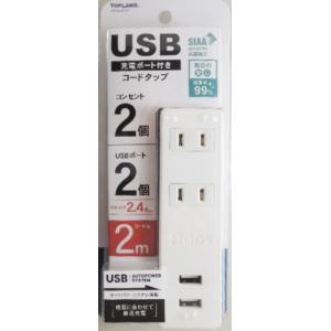 - トップランド USB充電ポート付 タップ 2m 白 STPA20−WT