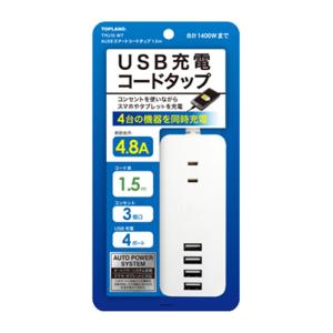 - トップランド 4USBスマートコードタップ 1.5m TPU15-WT