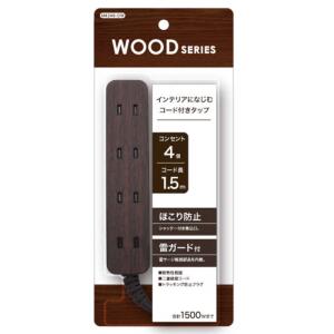 - トップランド コード付タップ WOOD SERIES ダークウッド [1.5m /4個口 /スイッチ無] M4249-DW
