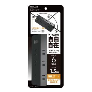- TOPLAND トップランド USB付レイアウトタップ 6個口1.5m TPL615-BK(2587132)