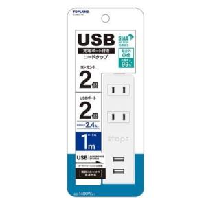 - トップランド USB付きコンセント(2個口+USB2ポート・1m)ホワイト TOPLAND STPA10-WT 返品種別A