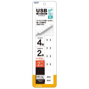 - トップランド USB-A×2ポート 電源タップ 4個口 2m(ホワイト) TOPLAND STPA420-WT 返品種別A