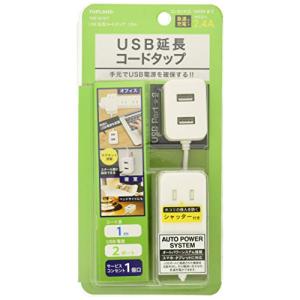 - トップランド USB 電源タップ AC1個口 USB2ポート 延長コード 1.0m 急速充電 ほこり防止シャッター オートパワーシステム搭載 ホワイト