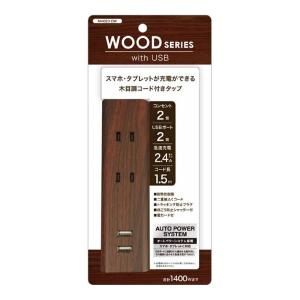 - トップランド USB付き節電4個口タップ1.5m ナチュラルウッド MTS15-NW