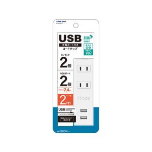 - トップランド USB付きコンセントタップ2個口 2m STPA20-WT コード付き電源タップUSBポート付 電源タップ OAタップ 配線パーツ 家電