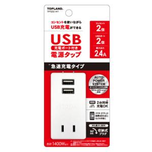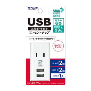 - トップランド USB付きスマートタップ(2個口+USB2ポート)ホワイト TOPLAND STPP4024-WT 返品種別A