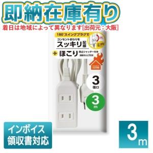 - ○[即納在庫有り] HD-T03A3MWH ハイディスク HI-DISC 3個口電源タップ 3m スイングプラグ 延長コード 白 ホワイト