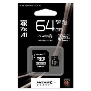 - HIDISC 4K対応 microSDXCメモリーカード 64GB Class10 UHS-I HDMCSDX64GCL10V30 返品種別A