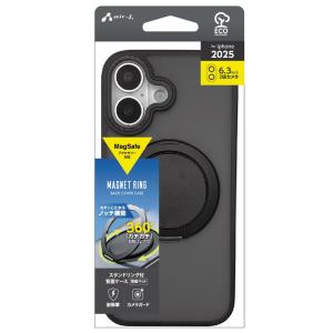 - エアージェイ iPhone 17用 MagSafe対応 カチカチ回転リングスタンドクリアケース(ブラック) air-J AC-P25-MRSBK 返品種別A
