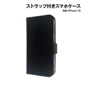 - iPhone13 対応 シャイニー手帳型ケース ストラップ付き AC-P21-SHY BK / ブラック